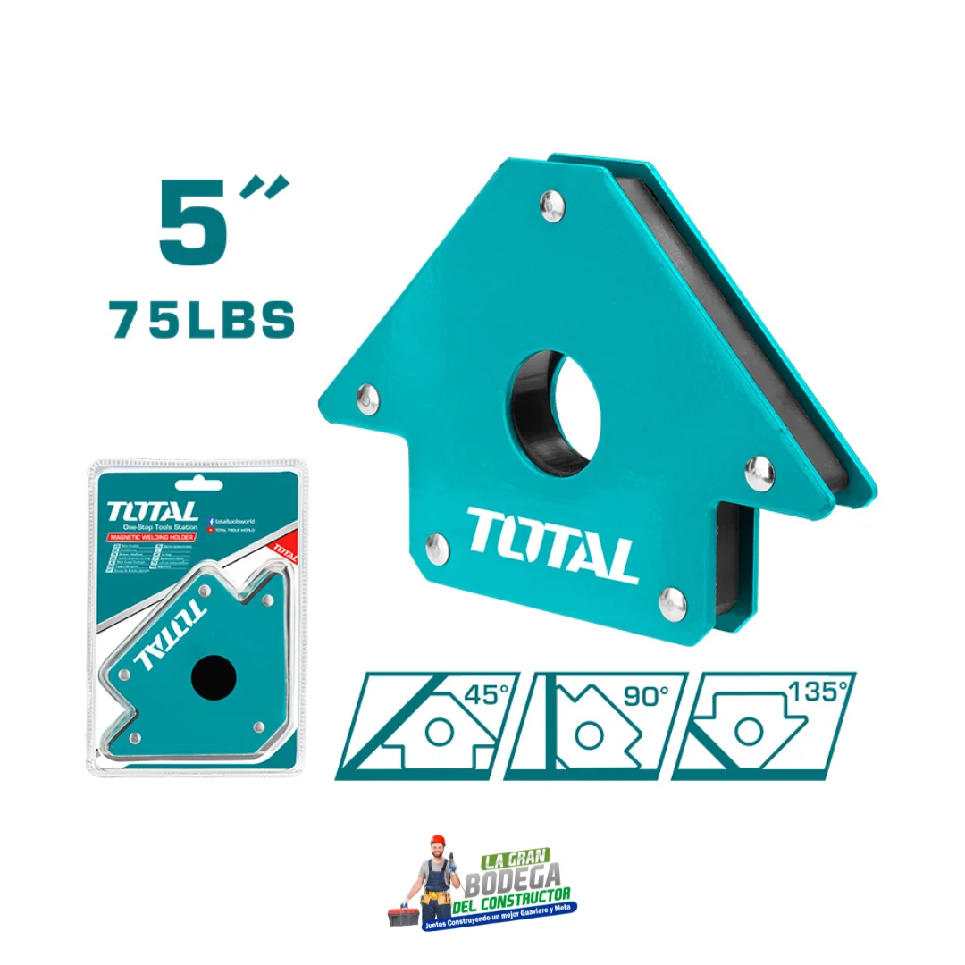 Soporte magnético 5" 75LB, fija piezas metálicas en ángulos para soldar.
